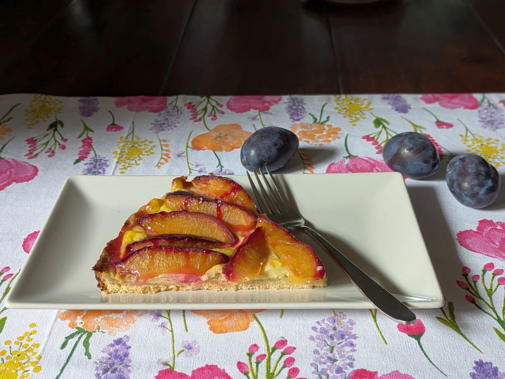 - Ich habe für das Foto eine 30-cm-Form verwendet, daher ist der Mürbteigboden eher dünn bei den angegebenen Mengen. Mag ich auch!