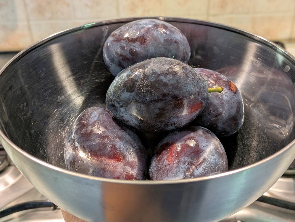 - Die Zwetschken je nach Größe halbieren oder vierteln und entsteinen. Mit dem Zucker vermischen.